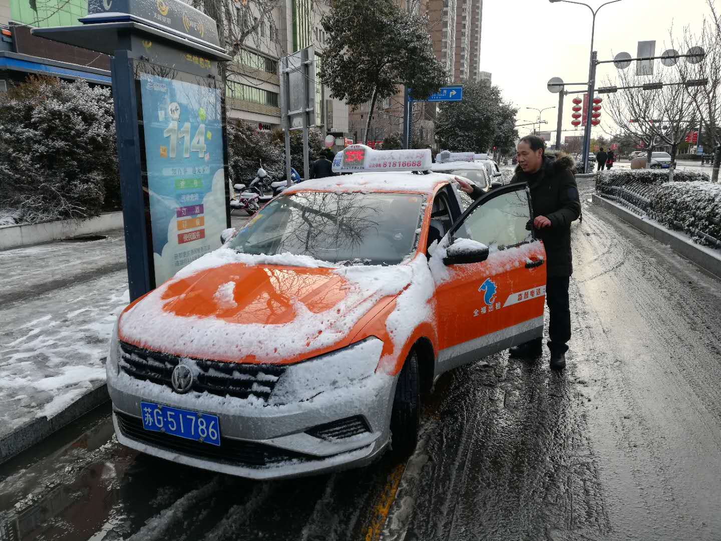 此外,公司在早上6點(diǎn)鐘就通過GPS信息、微信群發(fā)送信息給廣大出租車駕駛員:“今晨雪較大,地面伴有嚴(yán)重結(jié)冰,請(qǐng)大家根據(jù)自己駕車情況出車,謹(jǐn)慎駕駛,保持足夠安全距離,不要急剎車,不急打方向,注意安全行車!奔皶r(shí)提醒駕駛員一定要做好安全行車工作。