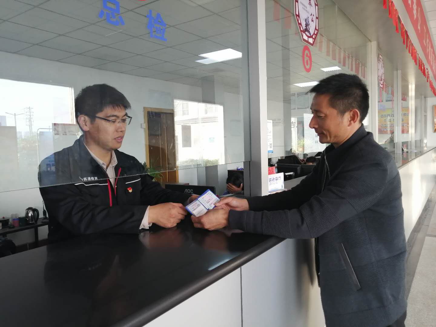 客戶反映在檢測(cè)過(guò)程中,由于車輛多,檢測(cè)時(shí)間過(guò)長(zhǎng),針對(duì)這一問(wèn)題,蘇港領(lǐng)導(dǎo)特別重視要求創(chuàng)新服務(wù)方式,立即成立了“一站式”服務(wù)窗口,將綜檢、安檢、環(huán)檢3種檢測(cè)業(yè)務(wù)整合到一個(gè)服務(wù)窗口,車主只需要將審車材料交給工作人員,便可以享受“一站式”便捷服務(wù)。