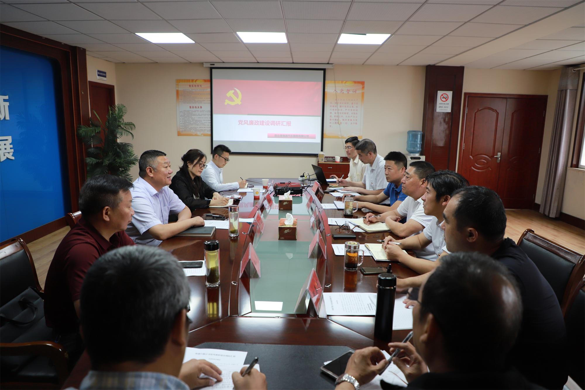 6月18日上午,市紀(jì)委監(jiān)委派駐第二十一紀(jì)檢監(jiān)察組組長張海帶領(lǐng)調(diào)研組一行4人,到汽服公司調(diào)研黨風(fēng)廉政建設(shè)工作,公司全體領(lǐng)導(dǎo)班子成員及相關(guān)部門負責(zé)人參加調(diào)研活動。