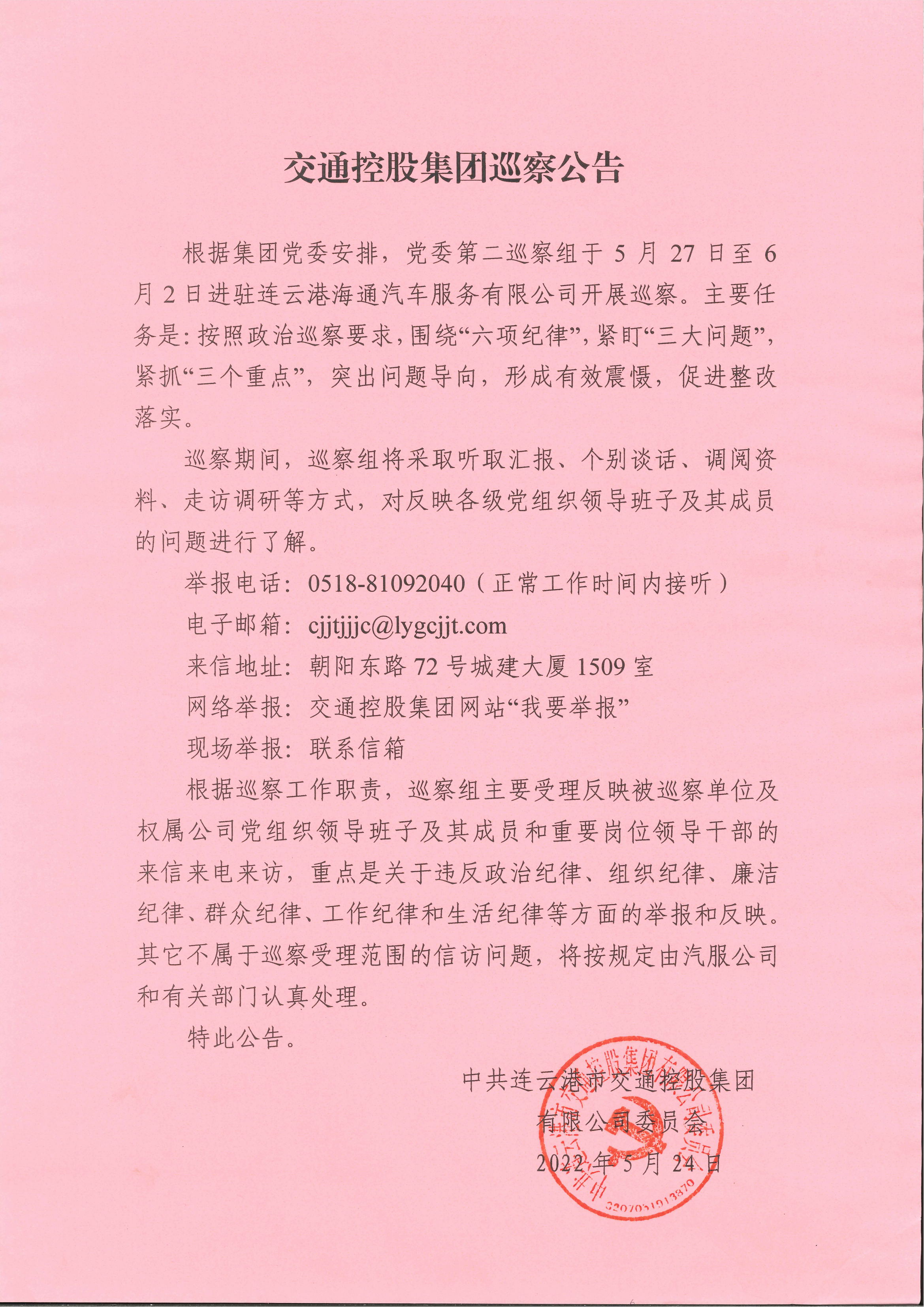 交通控股集團(tuán)巡查公告