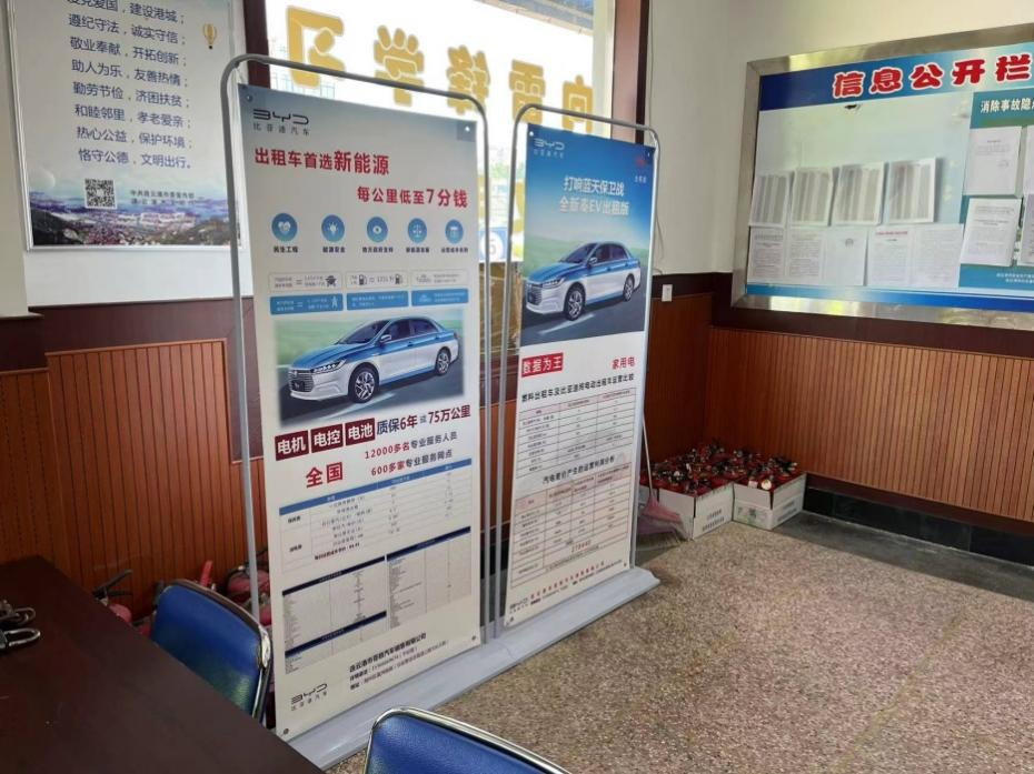 此次推廣宣傳,蒼梧銷售公司專門制作了比亞迪新能源出租車宣傳展架擺放至各出租車公司服務(wù)大廳的顯著位置。展架頁面上除了宣傳推廣政府補貼政策外,還介紹了比亞迪新能源汽車的構(gòu)造、性能等內(nèi)容。