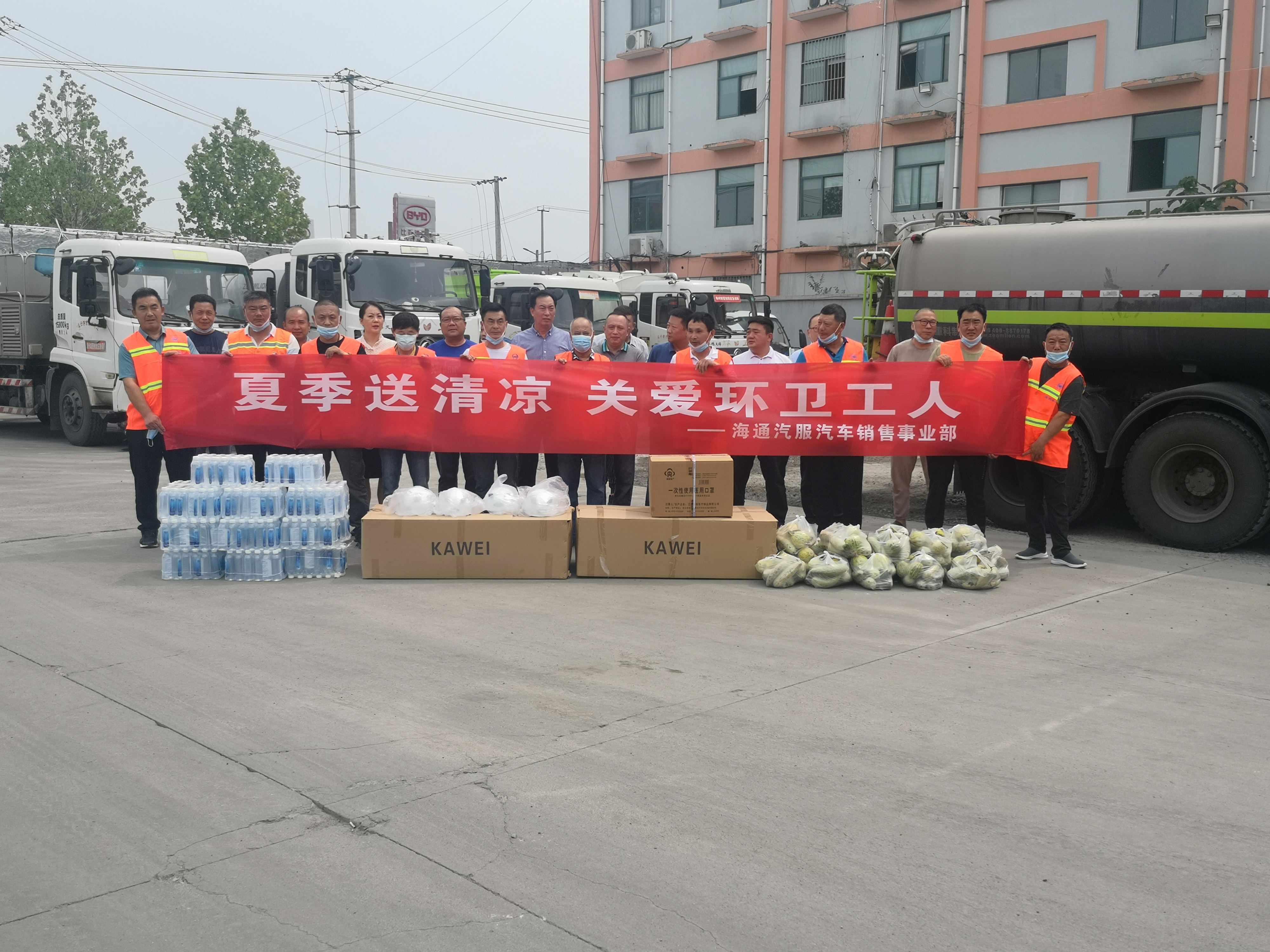 連日來,港城持續(xù)高溫,酷暑難耐,馬路上的環(huán)衛(wèi)工人們高溫下依舊堅(jiān)守崗位,用辛勤和汗水守衛(wèi)著港城環(huán)境干凈整潔,6月22日上午,汽服公司汽車銷售事業(yè)部攜手市海州區(qū)環(huán)衛(wèi)處開展“夏季送清涼 關(guān)愛環(huán)衛(wèi)工人”慰問活動(dòng),為區(qū)域內(nèi)奮斗在一線的環(huán)衛(wèi)工人送上了一份清涼和一份關(guān)懷。