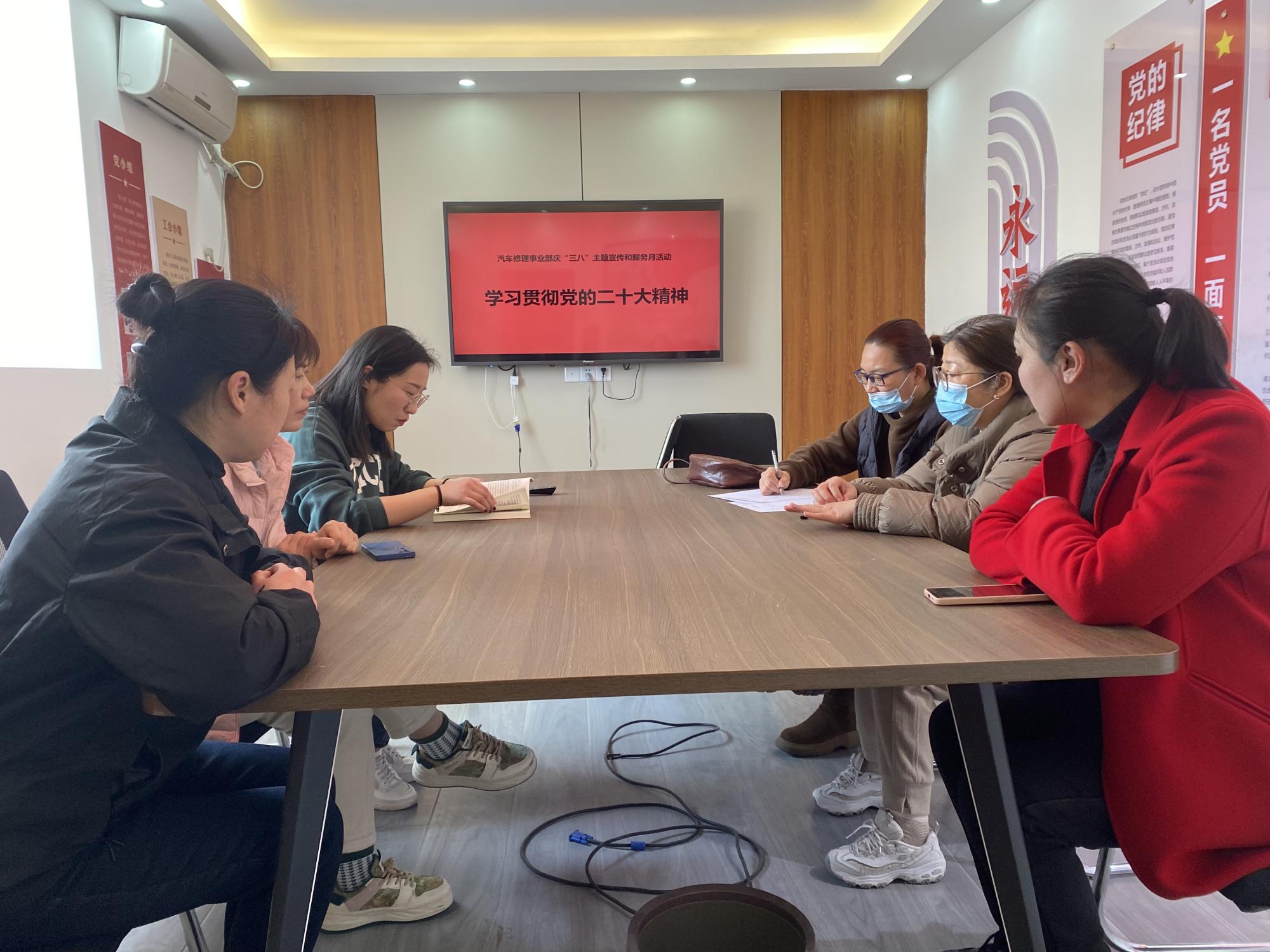 為全面深入學(xué)習(xí)宣傳貫徹黨的二十大精神,深刻把握報告的核心要義、精神實質(zhì)和重大部署,3月6日上午,汽車修理事業(yè)部工會組織女職工在鈑噴中心會議室召開慶“三八”集中學(xué)習(xí)會議,學(xué)習(xí)宣傳黨的二十大精神。