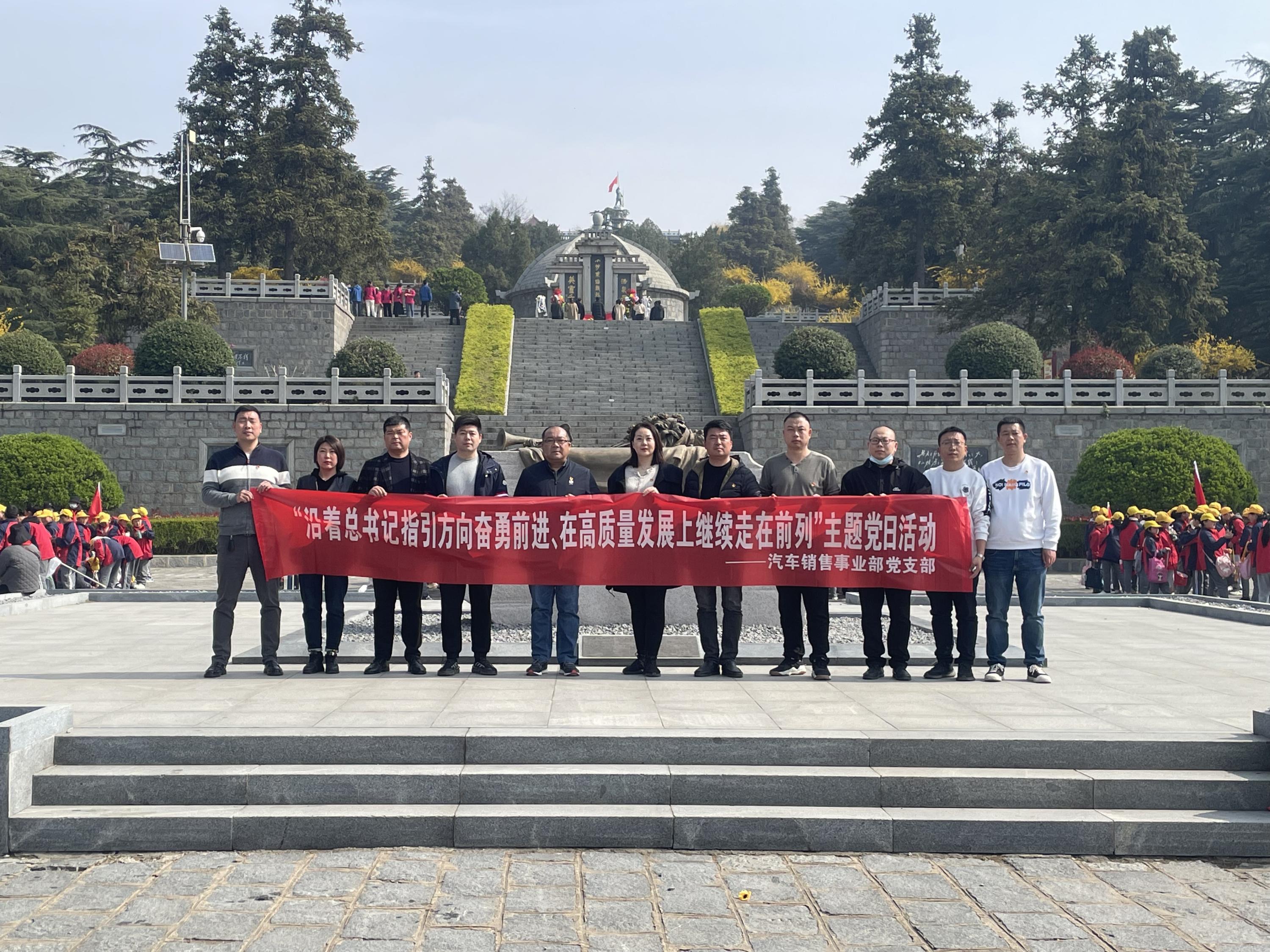 根據(jù)市委組織部《關(guān)于開展“沿著總書記指引方向奮勇前進、在高質(zhì)量發(fā)展上繼續(xù)走在前列”主題黨日活動的通知》文件要求和上級黨委安排部署,3月28日上午,汽車銷售事業(yè)部黨支部開展主題黨日活動,組織黨員干部前往贛榆區(qū)抗日山烈士陵園參觀學習。