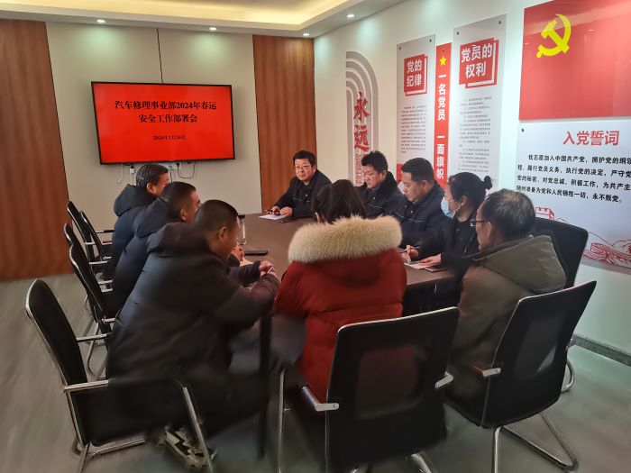 2024年的春運自1月26日起開始至3月6日結(jié)束。為貫徹落實交通控股集團和海通汽服公司“春運”安全工作會議精神,1月26日,各單位利用早會時間,認真?zhèn)鬟_春運期間安全生產(chǎn)各項要求;下午15:30,事業(yè)部又召開“2024年春運安全工作專題會”,再次對春運期間安全生產(chǎn)工作精神進行傳達和學習。申俊連書記結(jié)合行業(yè)特點和實際,要求各單位認真開展安全生產(chǎn)隱患自查自糾活動。他強調(diào),安全隱患要及時整改,重點對動火作業(yè)、職業(yè)安全防護、日常行為管理等方面要進一步加強管控。