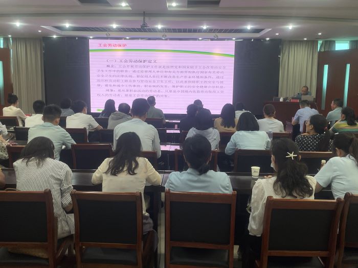 會上,許小兵老師采用PPT演示,圍繞工會勞動保護定義、安全生產和勞動保護的異同、工會勞動保護的職責和內容、工會勞動保護工作主要活動載體等方面進行了系統(tǒng)、深入、精彩的講解,并結合實際案例進行了分析,使員工們對勞動保護有了更加全面和深入的認識。