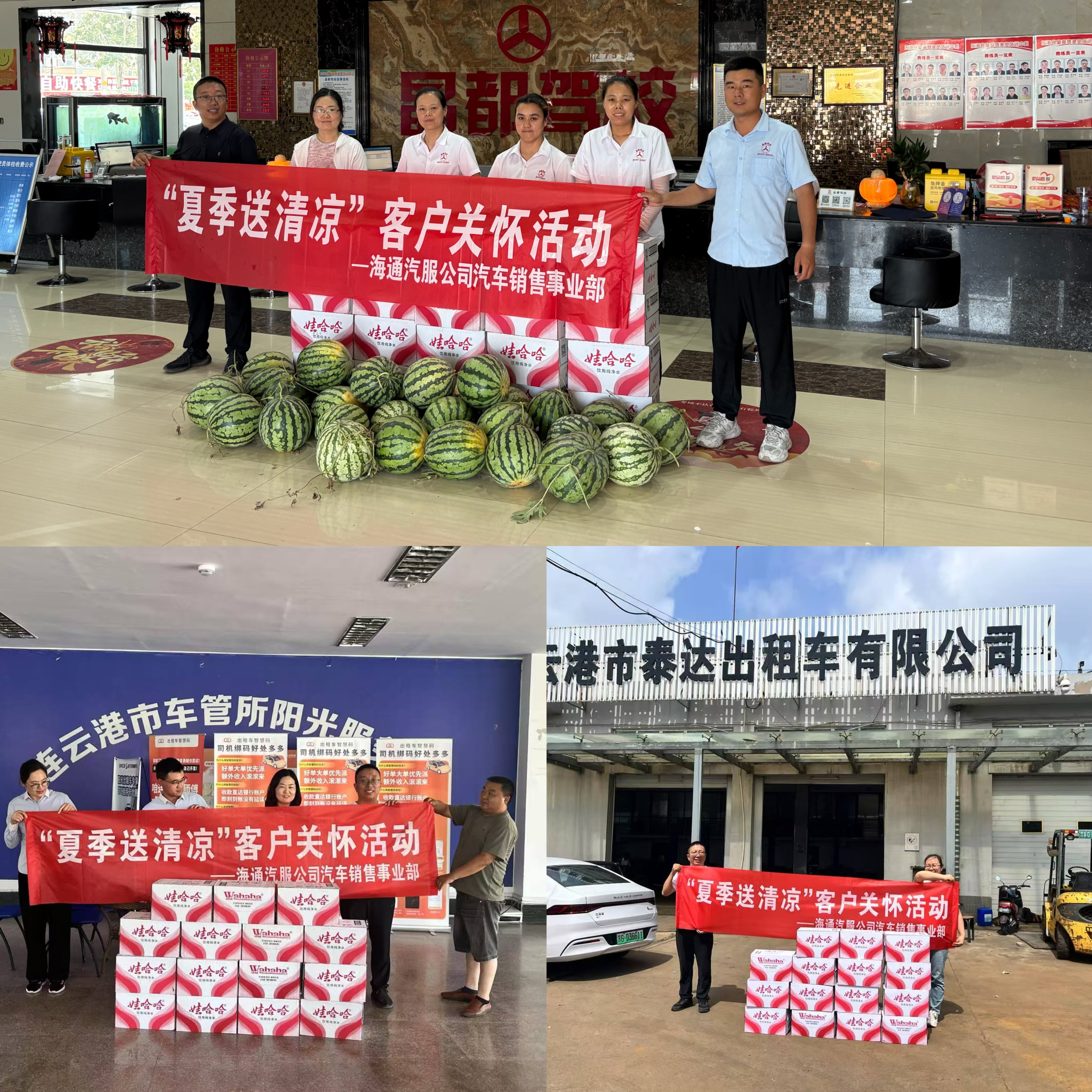 活動期間,事業(yè)部銷售團(tuán)隊(duì)針對出租車司機(jī)、駕校教練等戶外作業(yè)群體需求,精心籌備礦泉水、西瓜等防暑物資。在配送現(xiàn)場,銷售團(tuán)隊(duì)向駕駛員和教練們逐一發(fā)放物資,叮囑高溫作業(yè)注意事項(xiàng),并與合作單位負(fù)責(zé)人就夏季運(yùn)營保障、車輛維護(hù)等事宜展開交流。泰達(dá)出租公司負(fù)責(zé)人表示:"物資配送非常及時,切實(shí)解決了司機(jī)師傅們的防暑需求,而且連續(xù)三年收到這份清涼關(guān)懷,讓我們感受到合作伙伴的責(zé)任擔(dān)當(dāng)。"