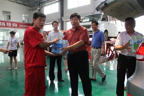 7月22日上午,海通集團(tuán)總經(jīng)理倪愛傳、工會主席王中永及相關(guān)部室負(fù)責(zé)同志,在汽服公司總經(jīng)理趙士強(qiáng)、黨委書記劉元祥、工會主席趙明的陪同下冒著高溫酷暑來到汽服寧海轎車修理車間,親切慰問了堅(jiān)守在生產(chǎn)一線的修理人員,并為他們送來了礦泉水、毛巾、香皂等防暑降溫品及部分安全生產(chǎn)法律書籍。