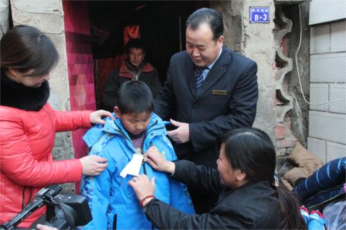 2月5日上午,載著新衣服和學(xué)習(xí)用品,“雷鋒的士”隊(duì)員代表邱永軍和錢明霞和女職工代表?xiàng)钣衿紒淼健靶「鐐z”家。哥哥去學(xué)校拿家庭報(bào)告書還沒回來,家中只有弟弟小然和父親!靶∪,我們來看你來了,這是我們給你買的新衣服和學(xué)習(xí)用品,快試試看合不合身。”一到“小哥倆”家,大家就忙活了起來,這個(gè)幫小然換衣服,那個(gè)幫小然選學(xué)習(xí)用品。看著過年新衣服有了著落,弟弟小然和爸爸謝廣銀臉上露出了久違的笑容。