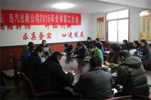 2月9日上午,連汽出租公司在公司會(huì)議室組織召開(kāi)2015年全體職工大會(huì)。公司領(lǐng)導(dǎo)班子、各部門(mén)負(fù)責(zé)人等共聚一堂,回顧總結(jié)2014年工作,科學(xué)研判生產(chǎn)經(jīng)營(yíng)“新常態(tài)”,重塑改革發(fā)展“新動(dòng)力”。
