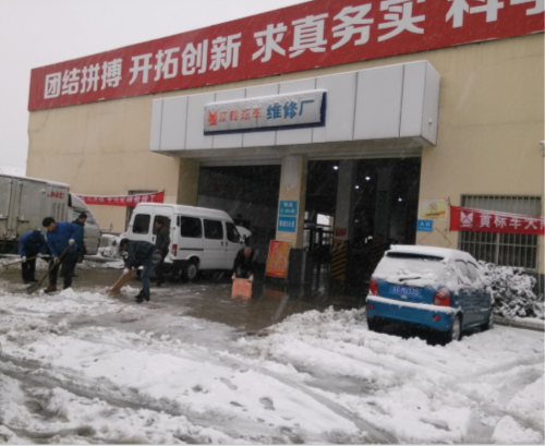 下午4點接到汽服公司《關(guān)于做好雨雪冰凍天氣安全生產(chǎn)工作的緊急通知》,根據(jù)通知內(nèi)容要求,修理公司支部書記成以好首先組織領(lǐng)導干部和共青團員冒著雪清掃廠區(qū)內(nèi)積雪,確保進出車輛暢通無阻,防止第二天道路出現(xiàn)路面結(jié)冰。其次,要求安全部門對廠區(qū)里安全情況進行一次大檢查,排查安全隱患。最后,通知全體員工在上下班途中一定要注意行車安全。