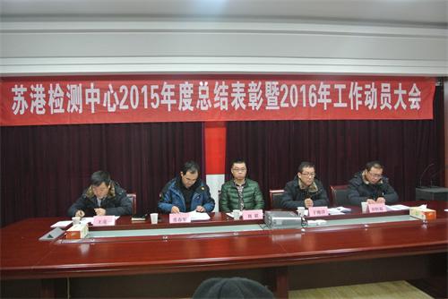 2016年2月1日下午,蘇港檢測中心全體員工召開了2015年度總結(jié)表彰暨2016年工作動員大會,會議由黨支部書記于俊洋同志主持,汽服公司副總經(jīng)理劉超應(yīng)邀參加,蘇港檢測中心領(lǐng)導班子、部分職工代表參加會議。