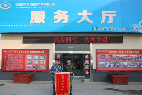 2016年12月7日上午9時(shí)許,駐連某部雷達(dá)站兩名軍人手捧著一面錦旗來(lái)到交控集團(tuán)全福出租公司,對(duì)G56817出租車的哥李鴻祥師傅長(zhǎng)期助人的行為表示感謝。